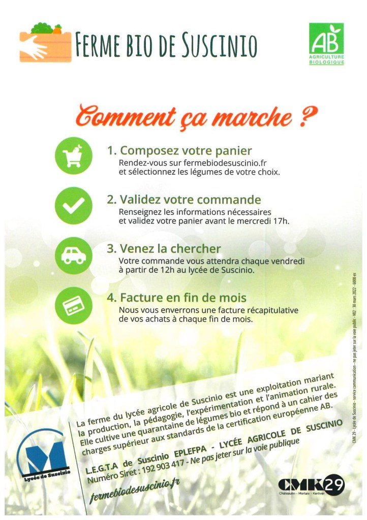 Pour celles et ceux qui auraient besoin d’aide pour faire leurs 1ères commandes, n’hésitez pas à nous contacter et venir rencontrer Marie Jo et Adeline à l’accueil de Ti an Oll. Elles vous aideront dans vos premiers pas de commande.