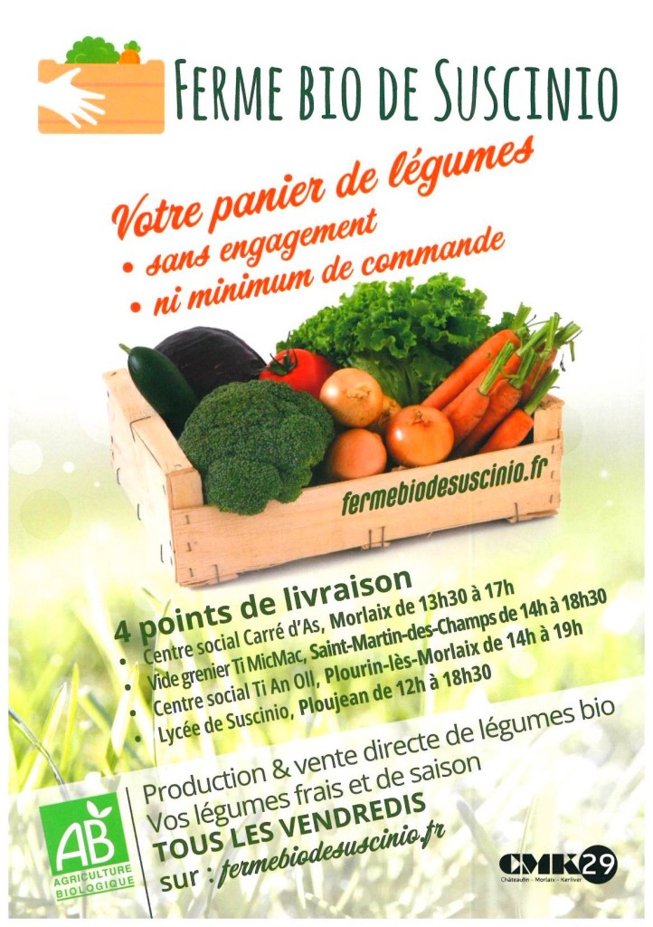 La livraison et le contenu des paniers est sous la responsabilité de la Ferme de Suscinio. Ti an Oll est un point de livraison. Notre seul intérêt est de permettre aux habitants d’avoir accès à des légumes de qualité, à un coût très intéressant.