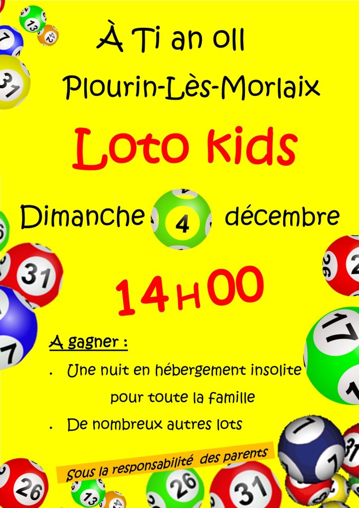 Le dimanche 4 décembre 2022, un loto kids est organisé à Ti an Oll.