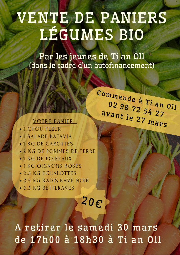 22 mars 2024Ti An OllLaisser un commentaire sur Vente de paniers de légumes bio Vente de paniers de légumes bio En savoir plus sur Ti An Oll Abonnez-vous pour recevoir les derniers articles par e-mail. Saisissez votre adresse e-mail… Abonnez-vous Partager : Cliquer pour partager sur X(ouvre dans une nouvelle fenêtre) X Cliquez pour partager sur Facebook(ouvre dans une nouvelle fenêtre) Facebook Cliquer pour envoyer un lien par e-mail à un ami(ouvre dans une nouvelle fenêtre) E-mail J’aime chargement… Articles similaires