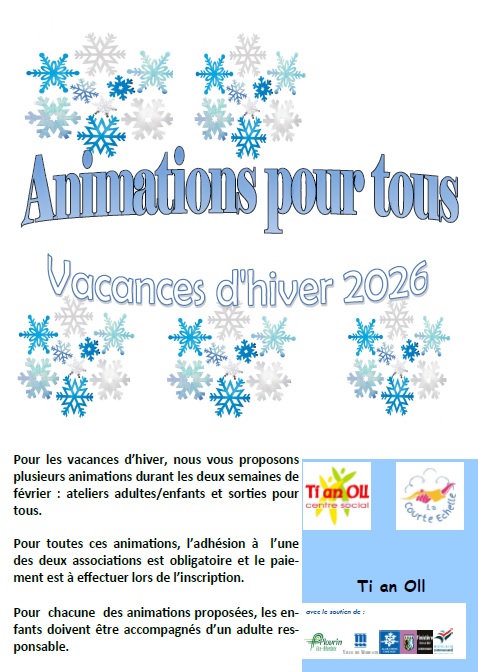 Les inscriptions se feront à partir du lundi 26 janvier à 9h par téléphone au 02 98 72 54 27, directement à l’accueil ou par mail à tao.contact@tianoll.fr