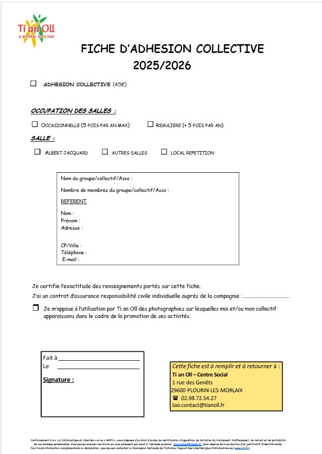 S’inscrire… Cliquez sur les images pour télécharger les fiches d’inscriptions. Adhésion collective : Ateliers : Adhésion : Partager : Cliquer pour partager sur X(ouvre dans une nouvelle fenêtre) X Cliquez pour partager sur Facebook(ouvre dans une nouvelle fenêtre) Facebook Cliquer pour envoyer un lien par e-mail à un ami(ouvre dans une nouvelle fenêtre) E-mail J’aime chargement…